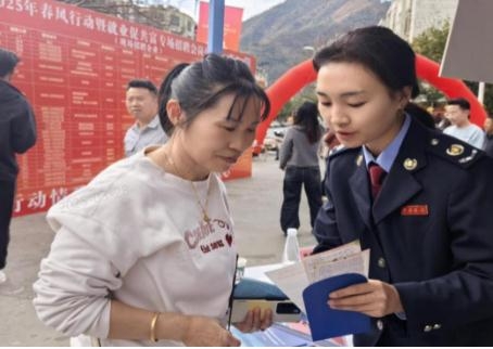 近日,在“春风送岗促共富 精准服务暖民心”米易县2025年春风行动暨就业促共富专项招聘会现场,税务人员正为求职者、招聘者们解答着各种税费疑问。