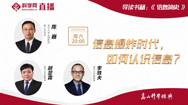 本周六晚八点,清华大学长聘教授、博士生导师陈巍;清华大学副教授胡翌霖;清华大学副教授李铁夫,一起阅读《信息简史》,反思身处信息爆炸时代,我们该如何理解信息。