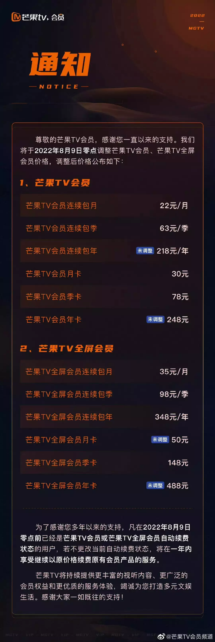 为保证盈利,芒果TV会员价格在8月份再次上调,月卡从25元上调至30元,涨幅达20%;季卡从68元上调至78元,这已经是一年内的第二次涨价了。