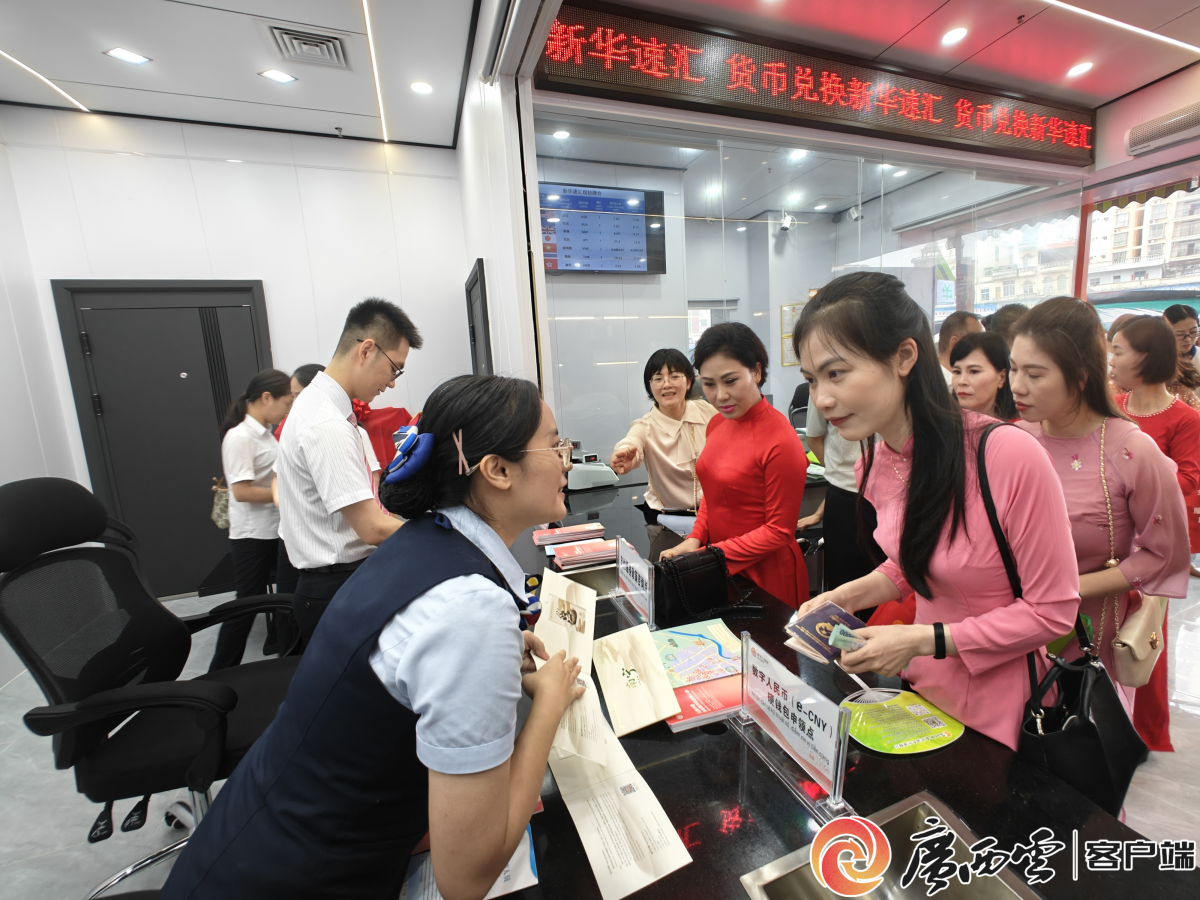 入境人员在全国边境口岸首个境外来宾金融综合服务中心办理外币兑换业务。