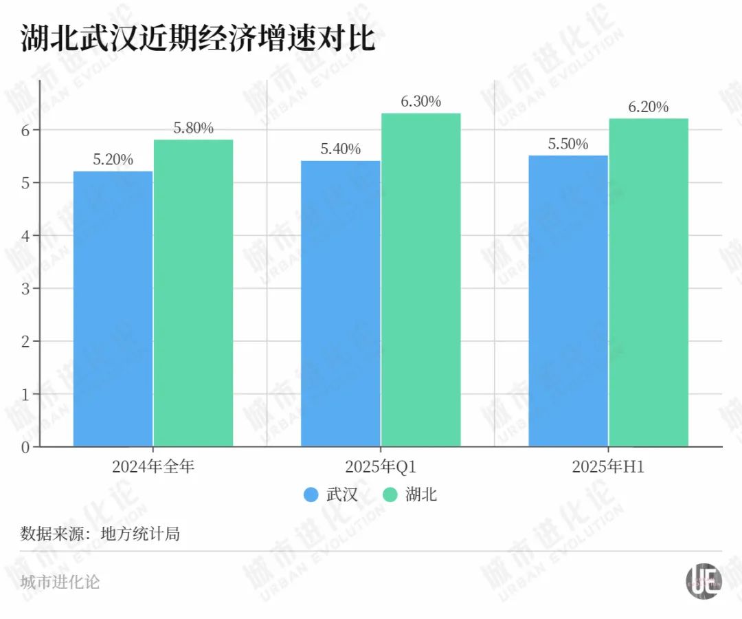 总量表现亮眼,但5.5%的经济增速,不及全省平均水平——上半年,湖北GDP增速6.2%,位列全国第三、经济十强大省第一。也因此,有人说,身为湖北省会,武汉似乎没有完全发挥出“龙头”的带动作用。