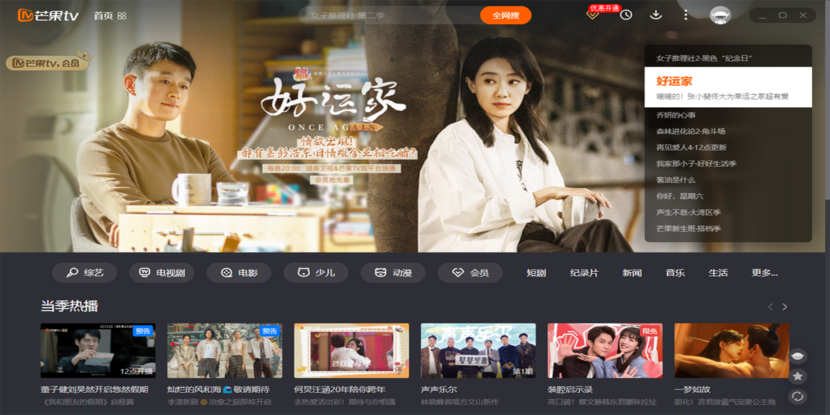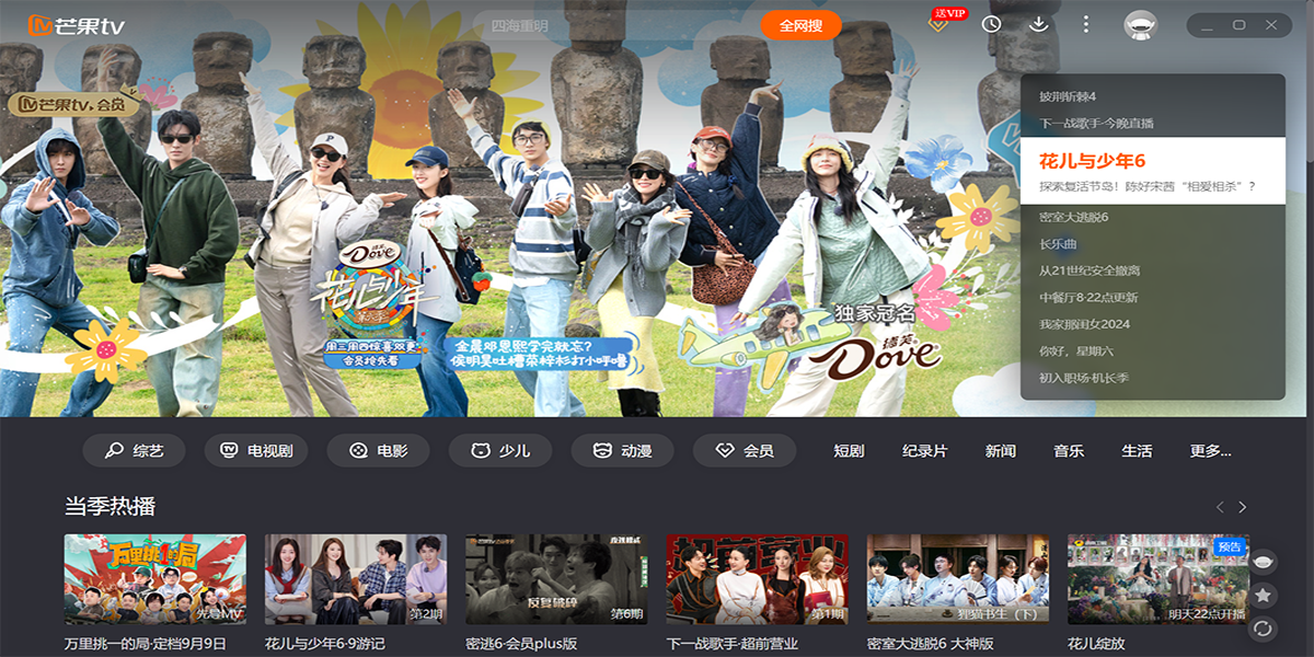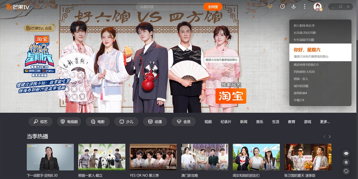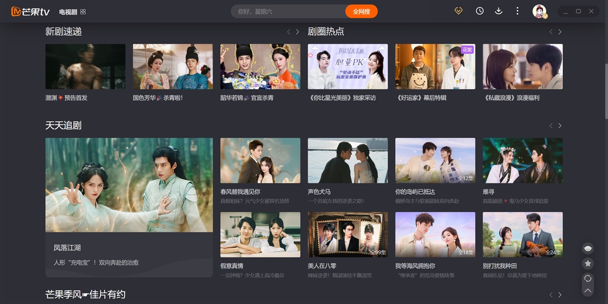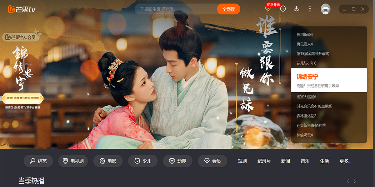 芒果TV电脑版是湖南广电旗下唯一互联网视频平台,聚合湖南卫视王牌栏目高清直播点播,同步全球热剧综影音内容。平台独播《乘风2025》《你好,星期六》等S级综艺,上线《仁心俱乐部》《国色芳华》等爆款剧集,更囊括《大侦探·拾光季》《声生不息·大湾区季》等原创精品。支持4K画质、多端云同步、个性化推荐,会员专享跳过广告、独家花絮等特权。芒果TV以“天生青春”为品牌主张,持续输出《妻子的浪漫旅行2025》《名侦探学院第八季》等创新IP,打造集视听盛宴、互动社区、直播电商于一体的全场景娱乐生态,引领行业盈利模式创新。在天极出彩软件园,您可以直接下载芒果TV的最新电脑版,并查看软件功能介绍、近期热播剧、软件更新日志等信息。天极出彩软件园为您提供安全的下载环境,确保下载过程流畅无忧。