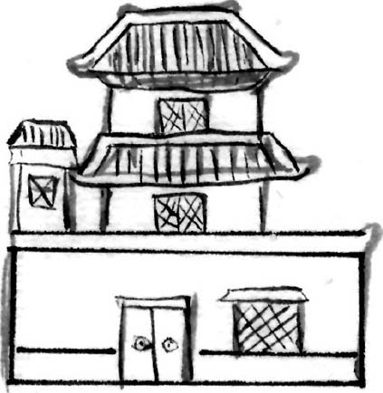 《说文·高部》:“高,崇也。象台观高之形。从冂、口,与仓、舍同意。凡高之属皆从高。”(高,崇高。像台观高耸的样子。由冂、由口会意,与“仓”字、“舍”字下部从口的构形原则相同。大凡高的部属都从高。)