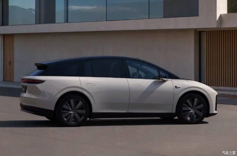 外观上,新车4.95米车长、1.93米车宽、1.65米车高,3米超长轴距,整体外观上与L系列有所不同,采用了全新车身设计,全新五座SUV形态,大曲率弧线贯穿车顶,运动溜背造型,运动感十足,后续的纯电i系列车型应该都是为此车身造型,前脸与尾部依然有着理想的家族式设计语音,贯穿的日间行车灯与尾灯。
