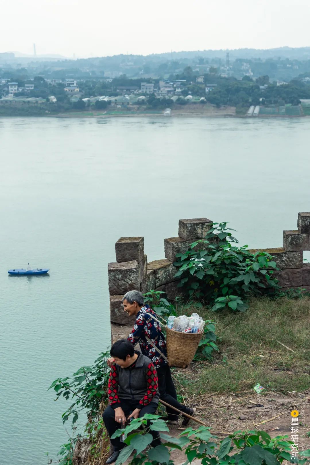 今神臂城遗址城墙,昔日战时纷乱不再,两位妇女正沿江眺望 | 摄影师@李珩