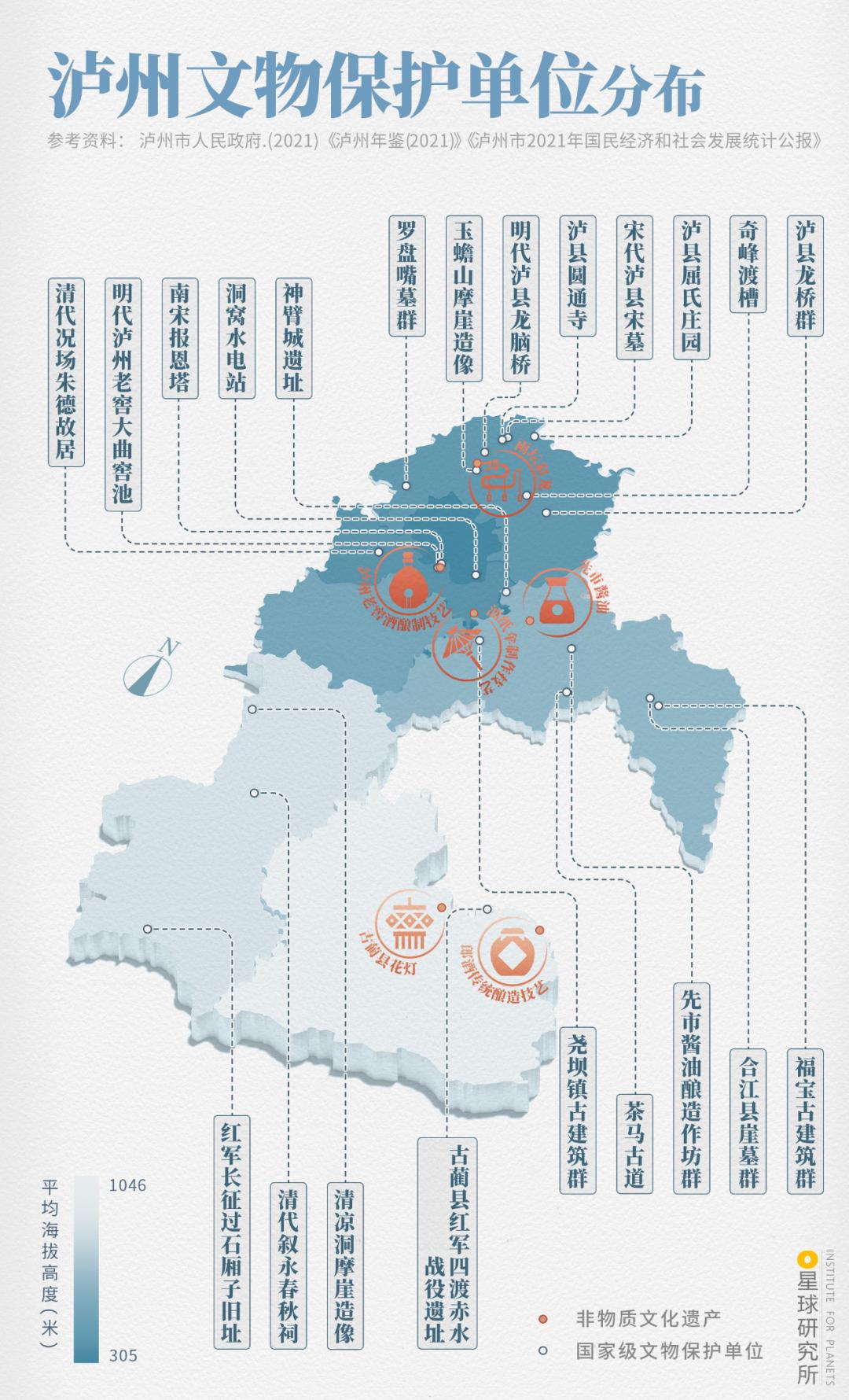 泸州文物保护单位分布图,其中国家级文保单位共22处,省级58处,市级高达110处 | 制图@吴昕恬/星球研究所
