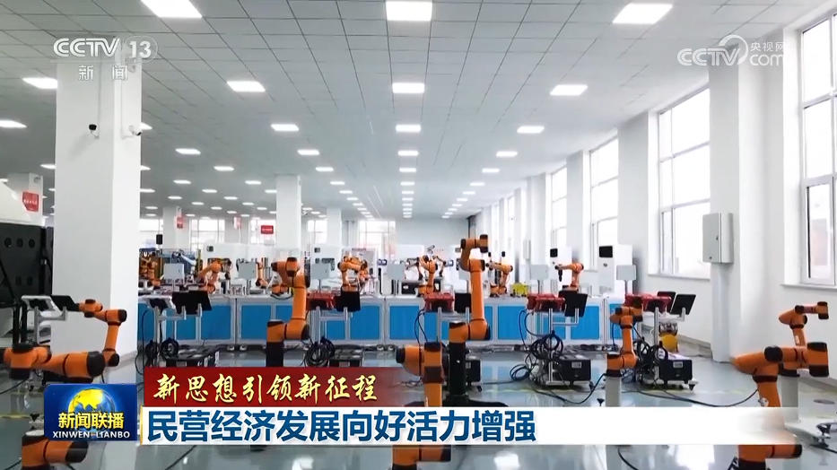 央视网消息(新闻联播):习近平总书记强调,新时代新征程民营经济发展前景广阔、大有可为,广大民营企业和民营企业家大显身手正当其时。要统一思想、坚定信心,促进民营经济健康发展、高质量发展。今年以来,一系列促进民营经济发展的政策措施落地见效,民营企业活力竞相迸发,高质量发展迈出坚实步伐。