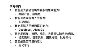 图1. 对“智能”这一概念的不同理解,会将人工智能研究导向迥然不同的方向