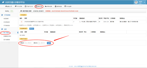 点击页面上方导航栏中的“课程选课”,再选择左侧目录栏中“选课”下的“网上选课”进入选课页面。