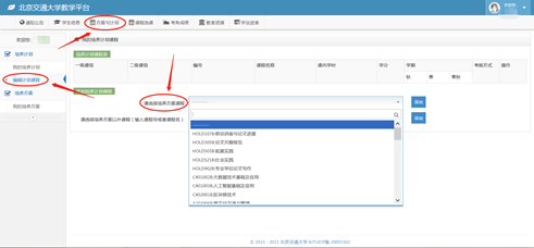 (1)通过方式二向培养计划课程列表中添加课程,系统会自动将所添加课程归入“自选课”课组。