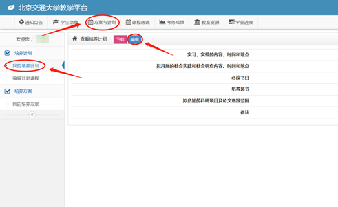 管理规定(2):研究生入学后应在两个月内在指导教师的指导下完成“个人培养计划”的制定,并由学生将个人培养计划录入到“北京交通大学教学平台”中;