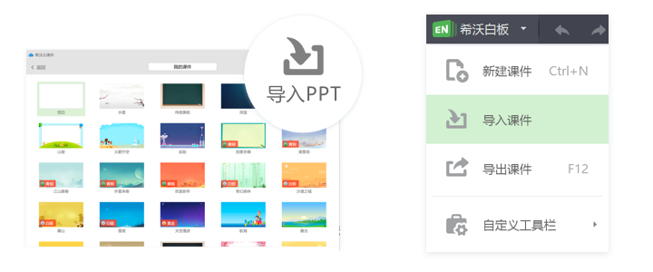 目前支持导入PPTX、PPT两种格式, PPTX格式可直接导入至希沃白板,软件可保留文件的可编辑性。