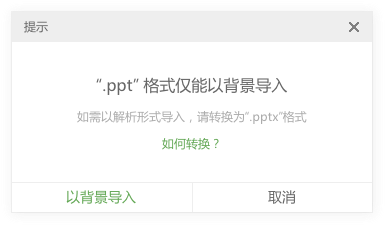 导入PPT为实验性功能,解析过程可能会丢失部分属性;
