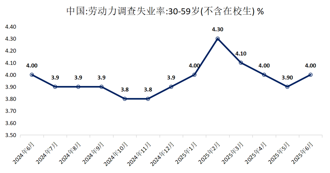 30-59岁(不含在校生)6月份调查失业率是4%,高于5月的3.9%,结束连续3个月下降。