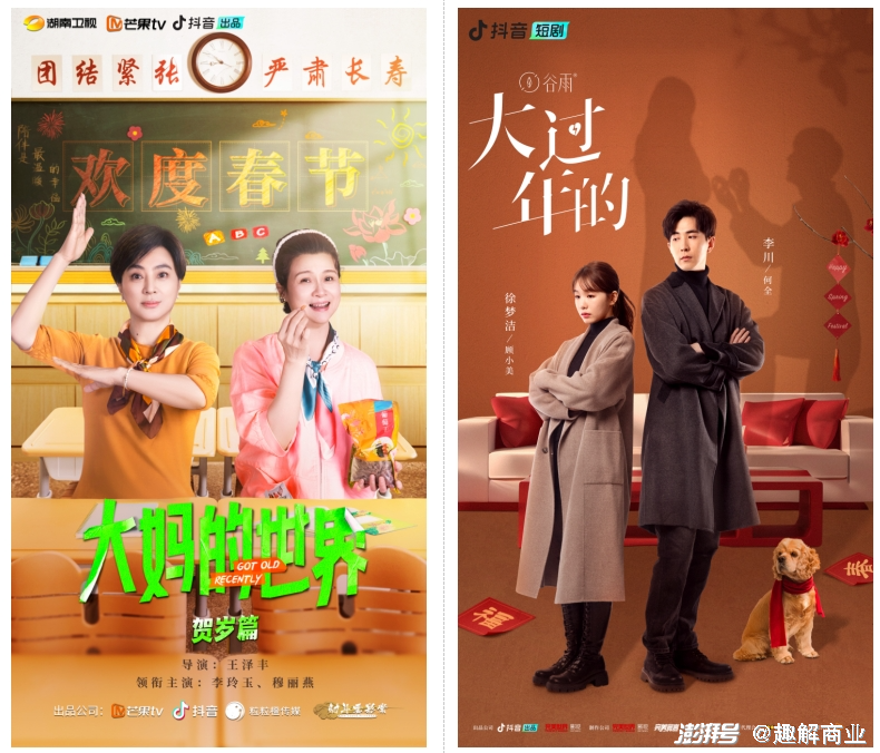 由徐梦洁主演的开年爆款短剧《大过年的》仅更新八集,正片总播放量超过4亿,每集的平均点赞量破百万。抖音联合芒果TV出品的上星短剧《大妈的世界贺岁篇》播放量破亿。