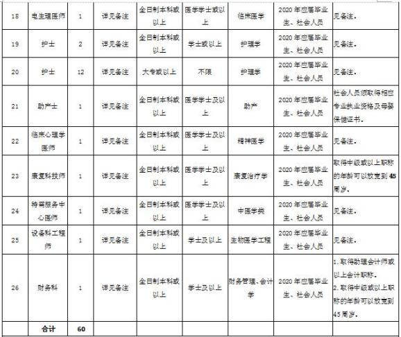 (2)社会人员需取得相应专业执业资格。应届毕业生及初级职称的年龄要求35周岁以下且需于入职3年内取得相应专业执业资格。取得中级资格或具有博士学历、初级职称的年龄可放宽至45周岁;取得高级职称的年龄可放宽至50周岁。