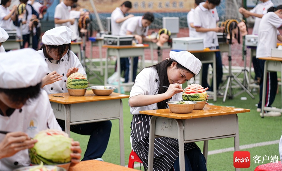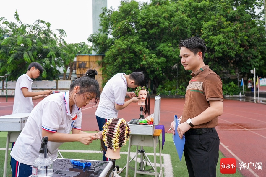当天下午,在学校操场和教室内,学生们正认真地进行技能赛项决赛。在会计基本技能的比赛教室内,不停地传来敲击键盘的声音,参赛学生正认真进行数字录入,随后进行原始单据录入,并做完记账凭证;在操场上,参赛学生正在进行计算机组装、中餐刀工、美发等技能比赛,看着被快速组装的计算机,被快速处理的精美蔬菜和水果,被快速做好发型的模型,现场老师、学生和家长纷纷给予好评。