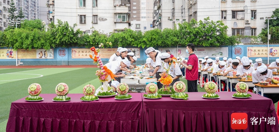 在技能展示环节,同学们进行了歌曲弹唱、钢琴演奏、舞蹈、风景速写、传统纹样创意设计、西瓜雕刻、冷拼、美容化妆走秀等,赢得现场老师、学生、家长的热烈掌声。