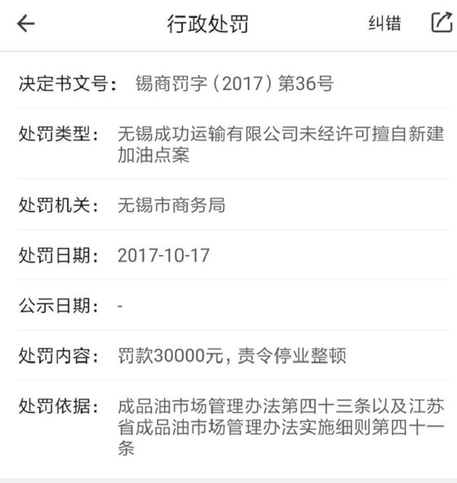 查询显示,无锡成功运输有限公司曾两次被行政处罚,连工商注册电话都是冒充的。