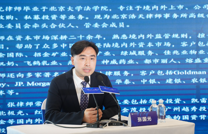 在法律讲坛环节,浩天律师事务所北京办公室合伙人张国光以“资本市场全透视”为主题,聚焦资本市场热点,从境内外资本市场现状、企业上市流程以及企业政策支持、制度规则等方面做心得分享,助力企业成功扬帆。