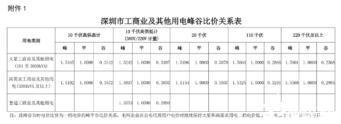 (三)维持现行工商业及其他用电峰谷比价不变,居民用电峰谷比价按省有关规定执行。维持深圳市现行各类工商业及其他用户各电压等级现行峰谷比价不变,居民用电峰谷比价调整为1.7:1:0.38。