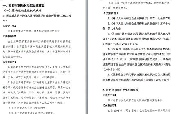 新版《支持脱贫攻坚税收优惠政策指引》主要包括以下六个方面内容: