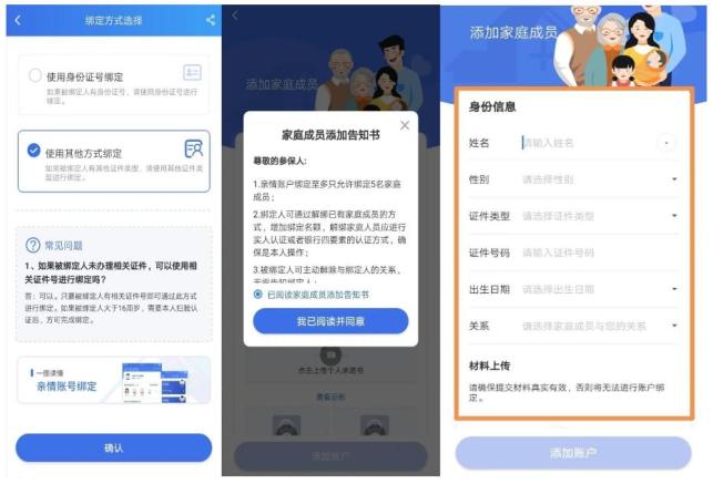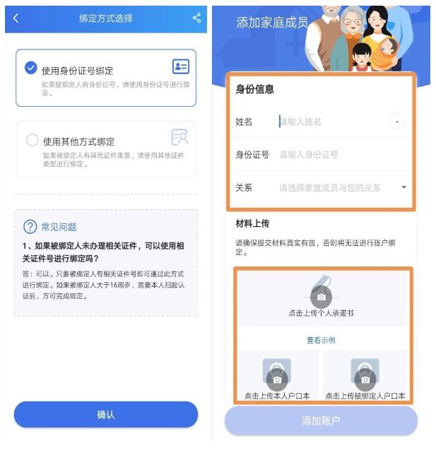 如果您添加的家庭成员小于16周岁,直接点击【添加账户】按钮即可完成账户关联。