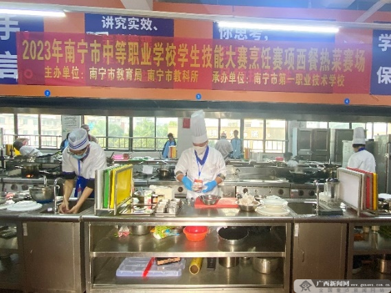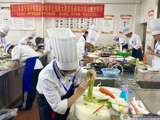 比赛当天,除咖啡服务比赛外,南宁市第一职业技术学校新阳校区还进行了烹饪技能比赛。该赛项共设立中餐热菜、西餐热菜、中式面点、冷拼与雕刻4个竞赛项目,吸引了来自全市11个学校共93人积极参赛。本赛项为个人赛,参赛选手们在规定时间内完成一系列竞赛内容,包括基本功作品、规定作品、自选作品和专业理论测试。