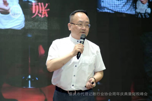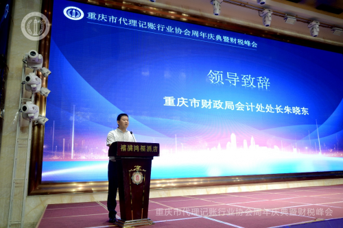 重庆市财政局会计处处长朱晓东进行大会致辞,他首先对重庆市代理记账行业协会成立两周年表示祝贺,同时对协会两年来发展取得的成果进行了充分的肯定,同时也对代账行业未来的发展提出了殷切的期望。
