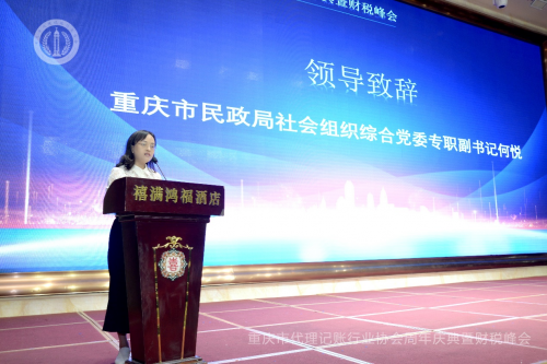 重庆市民政局社会组织综合党委专职副书记何悦发表致辞,同时对协会发展进行了新的思想指导,希望重庆市代理记账行业协会能够积极保持正确的政治方向,自觉跟党走,加强自身建设,完善内部治理制度,健全法人治理结构,成为权责明确运转协调制衡有效的法人主体。