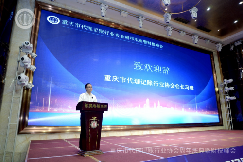 重庆代理记账行业协会会长冯璞致欢迎词,他首先对现场领导和嘉宾的到来表示热烈的欢迎,他表示重庆市代理记账行业协会成立两年以来,在市级领导和全体理事领导班子的共同支持和努力下,无论是在行业活动的开展方面,还是行业规范指引方面都下足了的功夫,也取得了一定的成果,希望在今后的工作中,依然能够充分发挥了行业桥梁和纽带作用,积极引导全市代账同行互相学习交流,打造最受信赖,最受尊重的一流行业协会,开创重庆代账行业发展新局面!