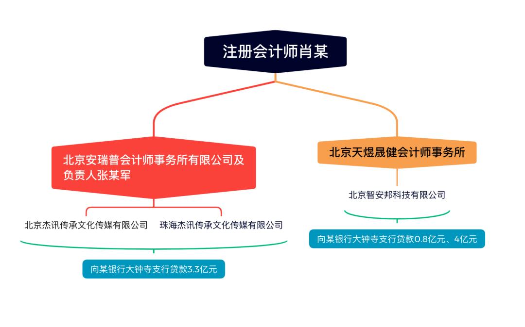 虚假审计报告所为何来?自然是被企业用于向银行贷款。其中,肖某、安瑞普会计所为北京杰讯和珠海杰讯出具的2017-2018年审计报告,被用于向某银行大钟寺支行贷款3.3亿元。