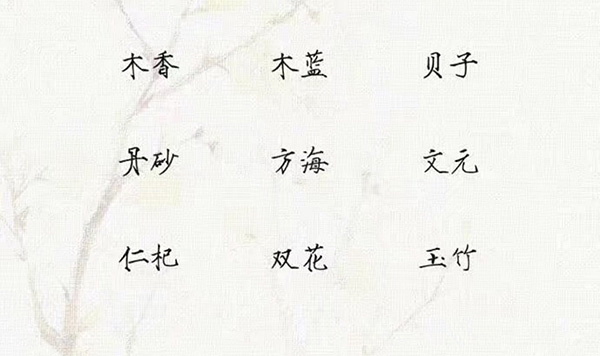 6. 木香 木蓝 贝子 开砂 方海 文元 仁杞 双花 玉竹