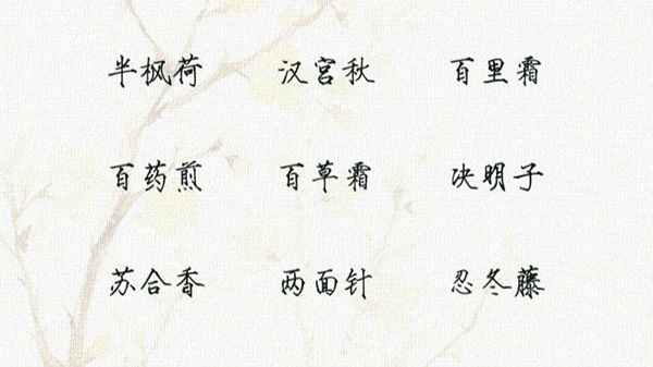 2. 如汉宫秋、半枫荷这样寓意美好的名字,听起来似乎一点也不像中药名,其实它们都是一些常见的药的别名罢了。