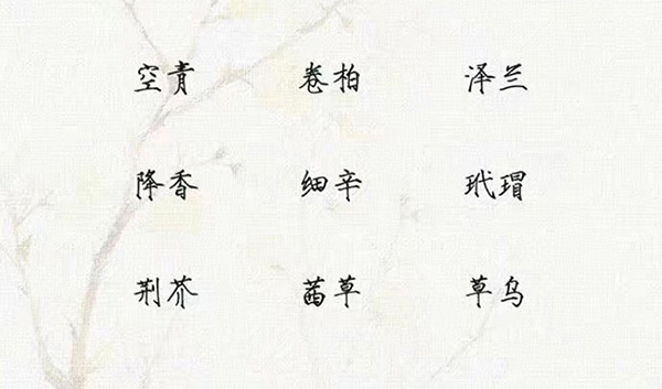 9. 空青 卷柏 泽兰 降香 知辛 玳瑁 荆芥 茜草 草乌