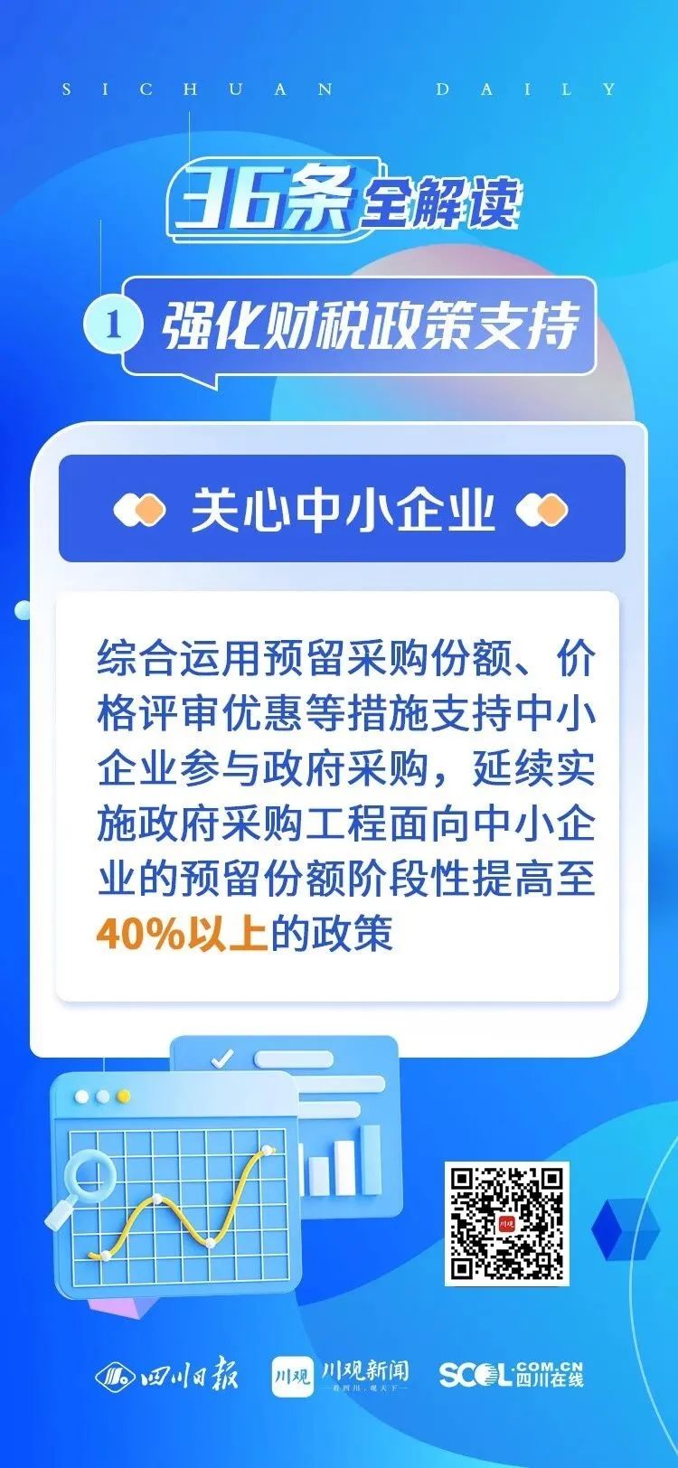 除了诸多针对小规模纳税人的减税降费政策外,政府采购也将给中小企业更多关照。“36条”明确,综合运用预留采购份额、价格评审优惠等措施支持中小企业参与政府采购,延续实施政府采购工程面向中小企业的预留份额阶段性提高至40%以上的政策。