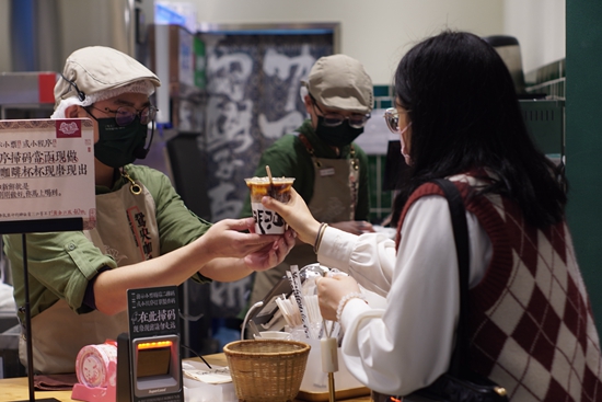 冬日里,一杯热饮递送到了顾客手中。童光鼎/摄