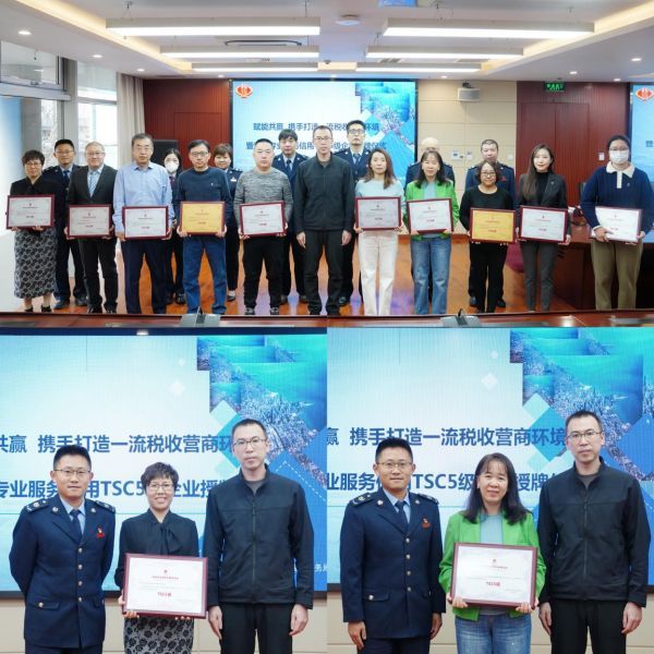 2023年12月7日,国家税务总局北京市东城区税务局召开“赋能共赢 携手打造一流税收营商环境暨涉税专业服务信用等级TSC5级企业授牌仪式”主题会议,并组织涉税专业机构现场座谈会。会上,北京审信东审税务师事务所、北京市东审律师事务所(以下均简称东审财税)被授予涉税专业服务信用TSC5级(最高级)证书。