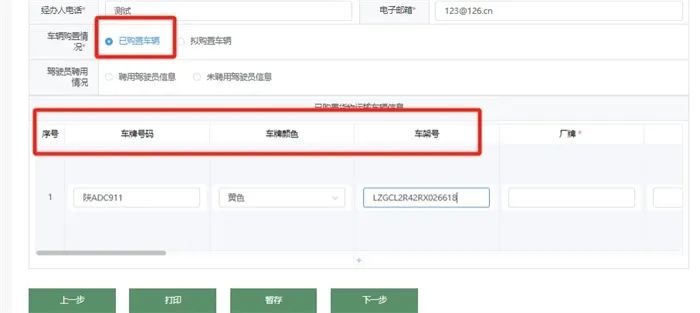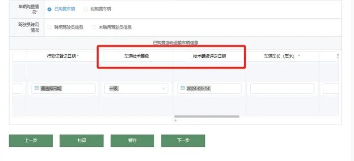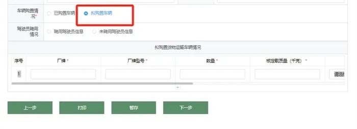 如果选择的是拟购置车辆,申请人需填写车辆基本信息,并于申请日起180天内完成承诺购置的车辆,办理《道路运输证》,逾期未实现承诺,系统会自动吊销申请人已获得的《道路运输经营许可证》,并禁止申请人再次通过网上自助申报。