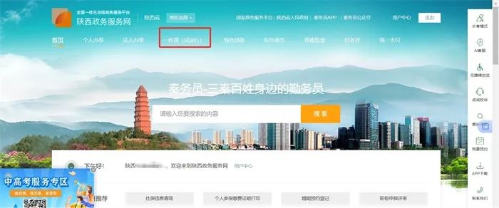 01. 申请人登录陕西省政务服务网(https://zwfw.shaanxi.gov.cn/)