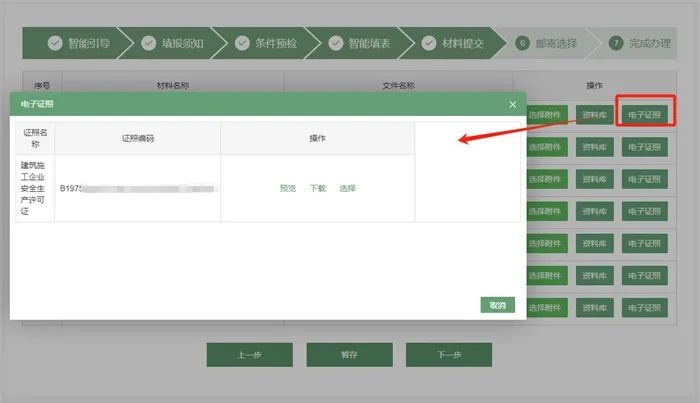 (3)电子证照选择,直接获取该账号在电子证照库中留存的电子证照。