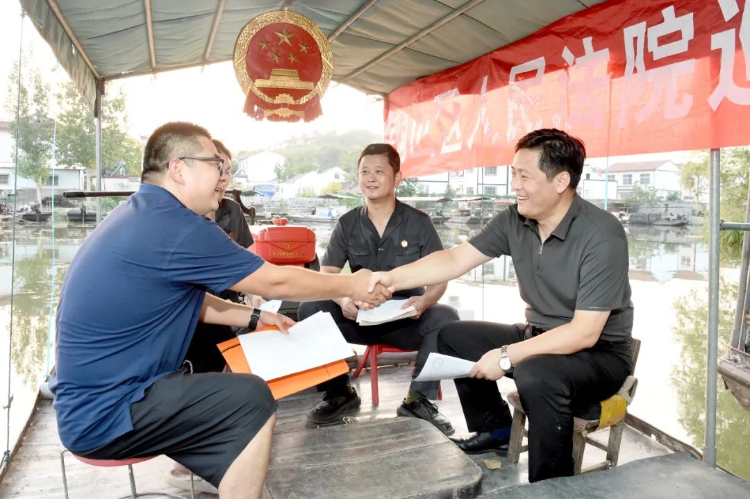 平时很少有机会看到的法官开始频繁出现在村子里,或是忙着测量土地,或是席地而坐现场调解;审案子也不在法庭,田地旁、鱼塘边、村委会,哪里有需求就往哪里去。