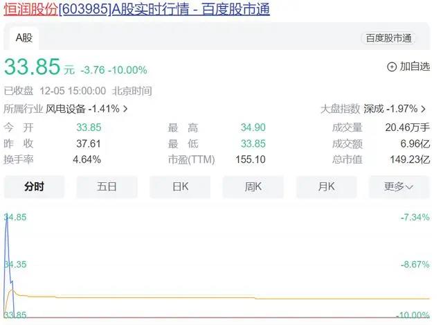 12月5日,恒润股份早盘封死跌停板,一度成为两市唯一跌停股。盘中有多则有关恒润的“小作文”流传,矛头均指向恒润股份经营算力业务的控股子公司上海润六尺科技有限公司以及算力业务合作方上海六尺科技集团有限公司。