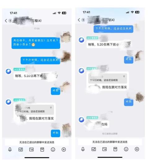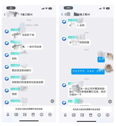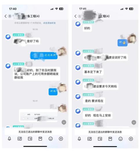 进群后,看到“老板”和“大股东”都在群里,而且正在讨论一个项目,“老板”告知小张有一笔款要打到公司账户,让其随时查看。