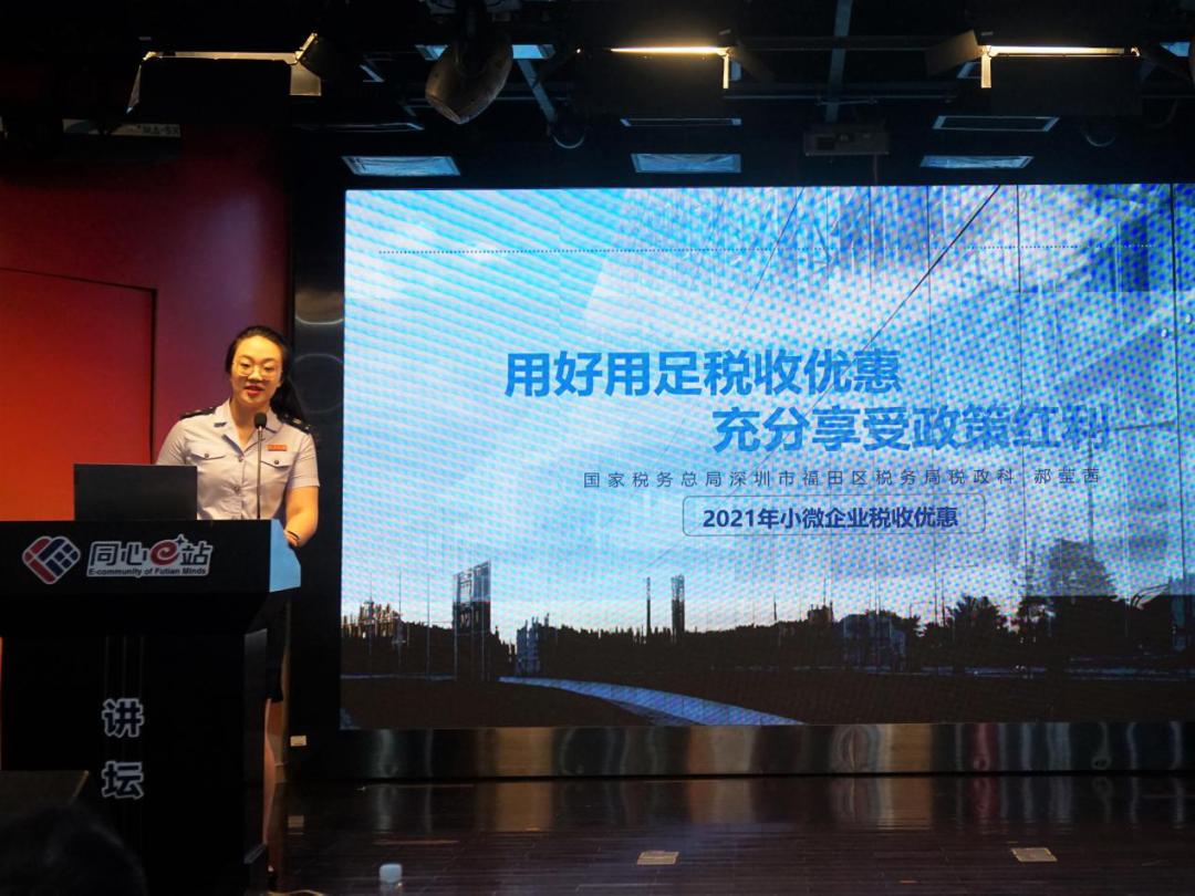 区税务局相关负责人作了《用好用足税收优惠 充分享受政策红利》专题讲座,详细讲解了增值税、“六税两费”、企业所得税、个人所得税、非税优惠等支持政策及申领指南,帮助企业应享尽享优惠政策。招商银行深圳分行授信审批中心负责人为参会企业开讲《银行授信视角的财务报表》,从独特的银行视角为企业详细讲解了改善财务管理方面可供参考和借鉴的分析模式。