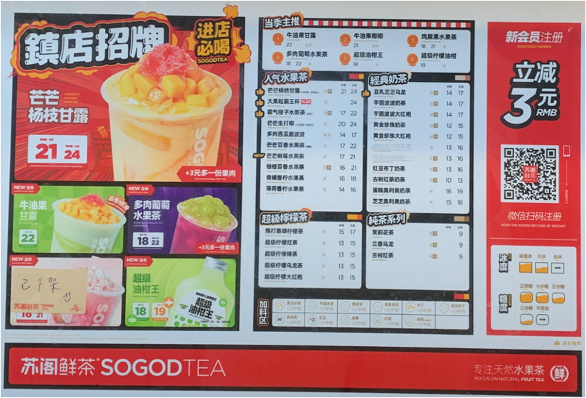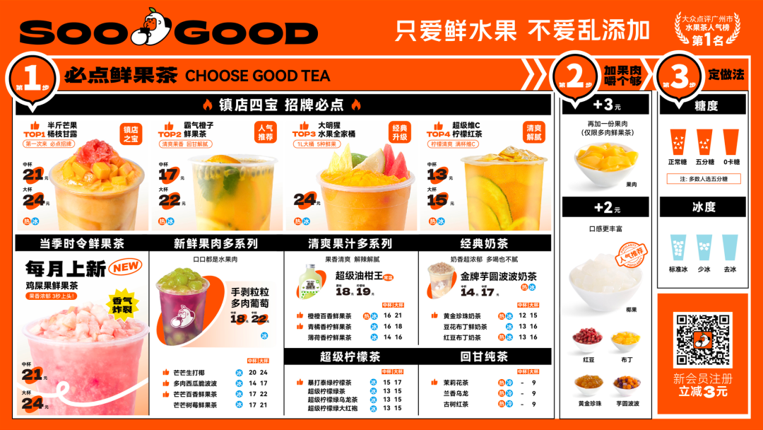更关键一点,是契合新的鲜果茶定位,减少了奶茶产品,放大了鲜果茶占比,强化用户「苏阁=鲜果茶」的心智认知。
