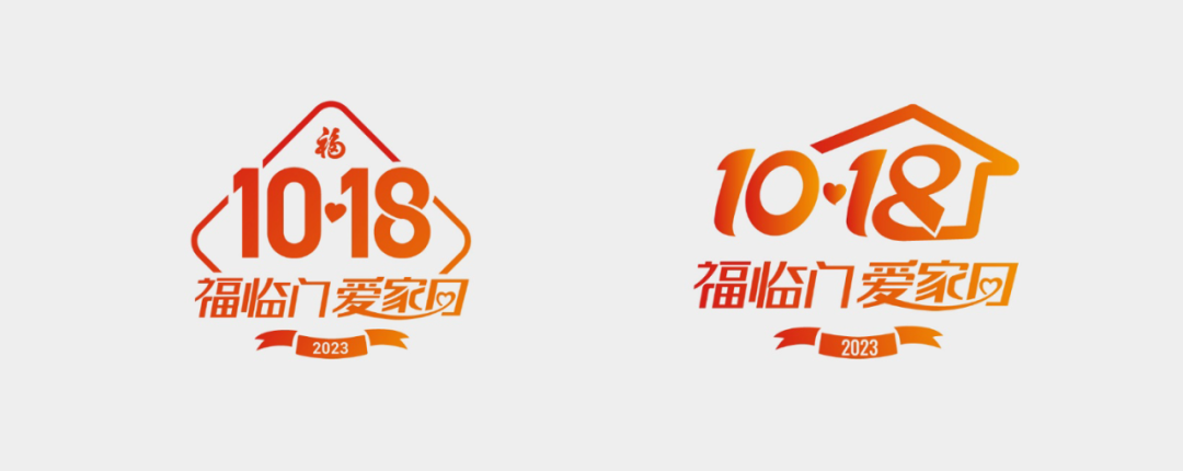 首先把时间放大,其次重新命名为「福临门·爱家日」,形成品牌专属,同时更易于延展,无论放大缩小识别都很清晰。新升级的形象得到客户一致认可。