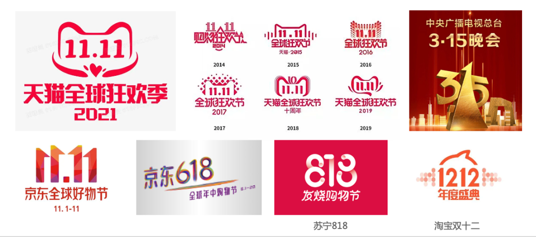 1、最大的问题在于信息层级不当,节日IP,属自造节,信息第一层级是时间,其次才是节日名称。比如双十一、315、618,都是把时间放到最大: