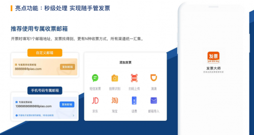 发票大师是新一代的智能财务平台SAAS2.0,与传统的SAAS不同,SAAS2.0深度应用AI技术将财务人员已从简单、重复、琐碎、机械的工作中解放出来,首创的智能收票邮箱,为用户提供发票自动收集、识别、整理,批量查重验真。