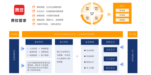 费控管家面向成长型、成熟型企业,完成事前预算、场景化支付、事中控制、事后分析的全流程闭环,真正实现资金流、信息流、发票流三合一实现降本增效,且支持私有化部署与定制,满足不同行业费控需求。